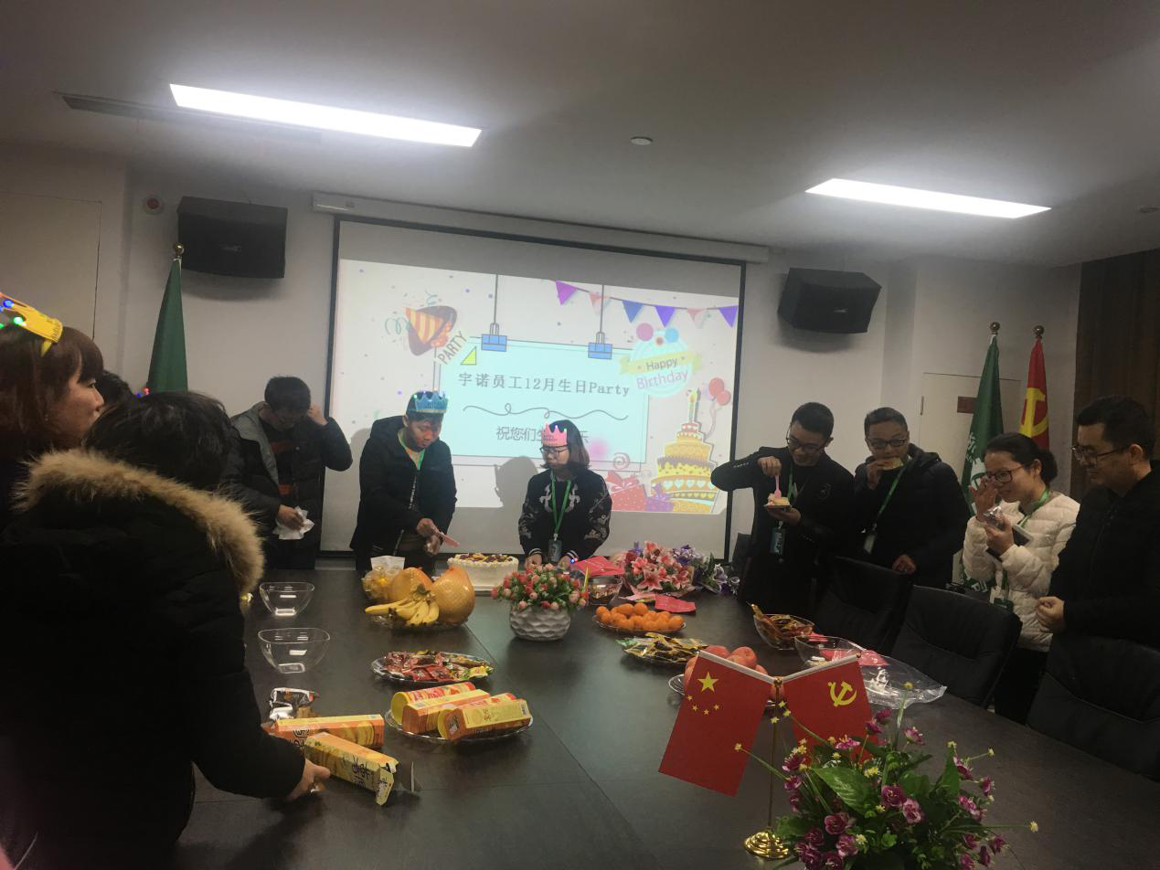 為讓員工度過一個溫馨快樂的生日,12月07日下午,杭州宇諾特舉辦十二月員工慶生會活動,大家齊聚一堂,共度歡樂時刻,公司為大家準備了各類零食,還特意為壽星們準備了生日蛋糕和賀卡。