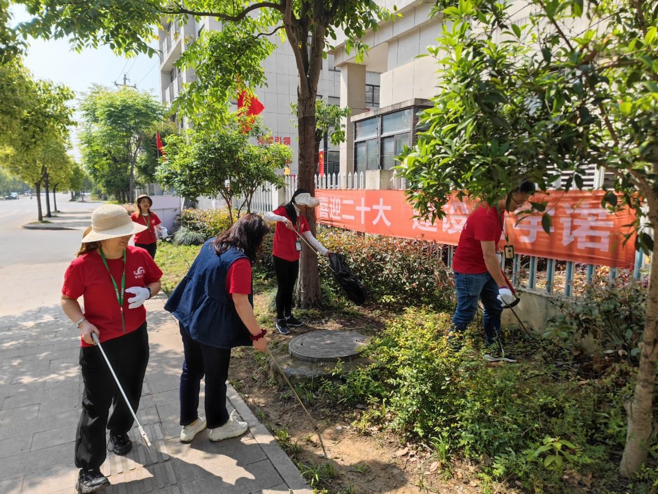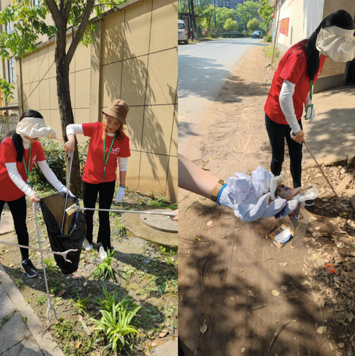 在對園區(qū)進行全方位清掃后,黨支部成員們帶上清潔工具,走出園區(qū),對周邊的環(huán)境進行清潔。