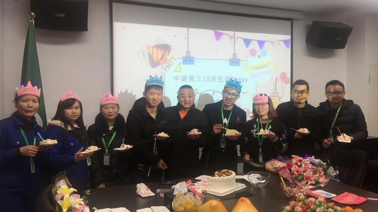 為讓員工度過一個溫馨快樂的生日,12月07日下午,杭州宇諾特舉辦十二月員工慶生會活動,大家齊聚一堂,共度歡樂時刻,公司為大家準備了各類零食,還特意為壽星們準備了生日蛋糕和賀卡。